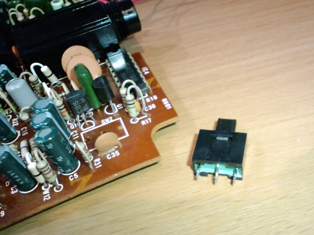 意外とスイッチが大きく、このままだと基盤の部品と接触して